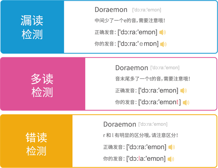 驰声英文句子诊断纠音内核:2020年全新技术,可识别并标注出学习者在句子练习中多读、漏读、错读、重复朗读的单词。同时,该内核可提供总分、准确度得分、流利度得分、完整度得分、各单词发音得分。此外,该内核嵌入了实时返回已读内容的功能,助力产品更智能!如,结合产品界面设计,制作实时动效,将语音识别结果呈现在文本上,加强视觉感官和交互体验;该功能也可以应用于:朗读结束后,用户无需按结束录制按钮,即可自动返回评测结果,助力用户使用体验大幅提升。