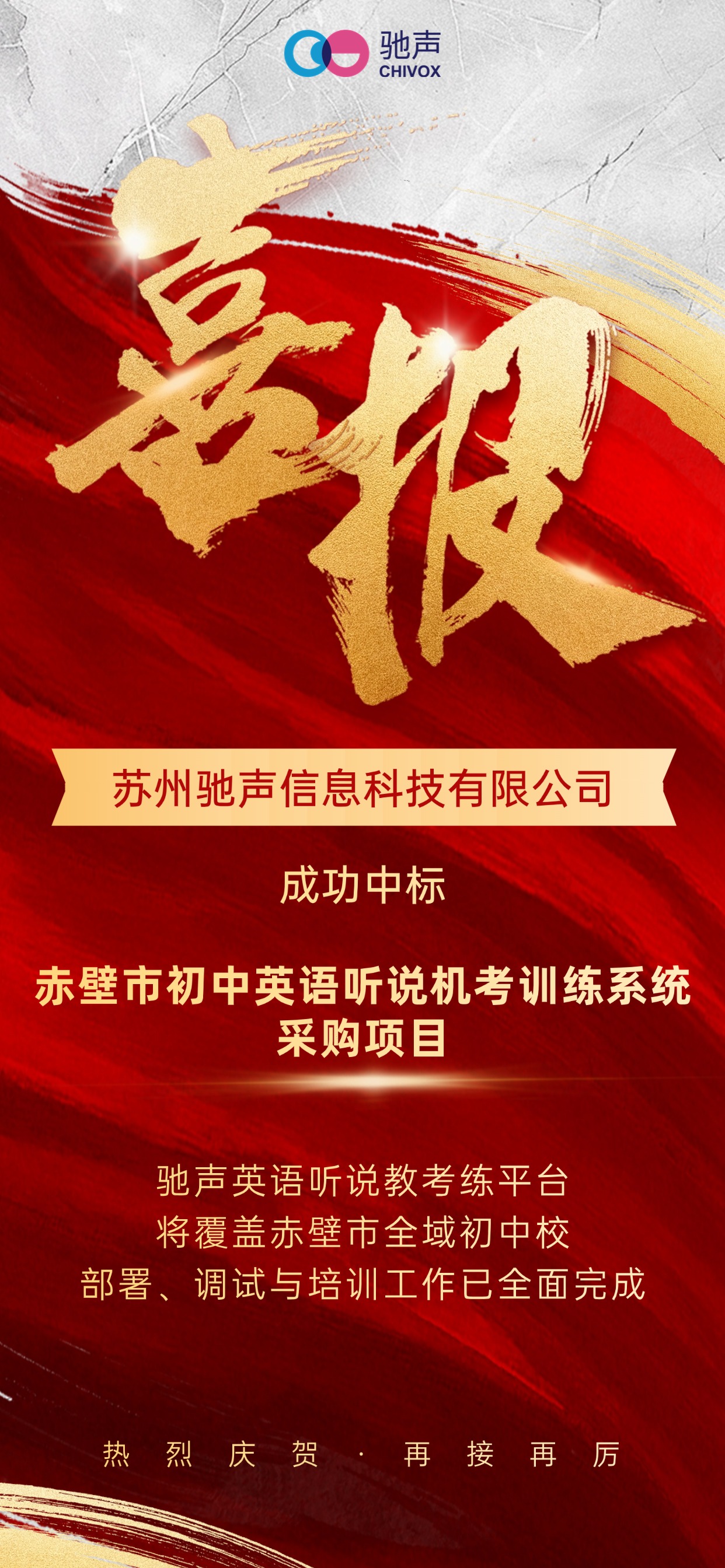 日前,驰声成功中标湖北省赤壁市教育局“采购初中英语听说机考训练系统”项目,标志着驰声在英语智慧教育领域的综合实力再次获得认可。
